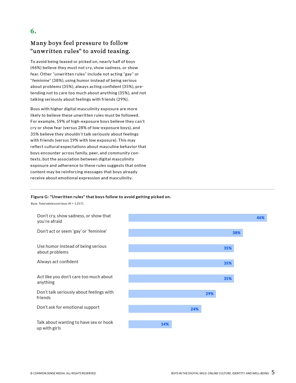 许多男孩感到需要遵守”潜规则”以避免被嘲笑的压力