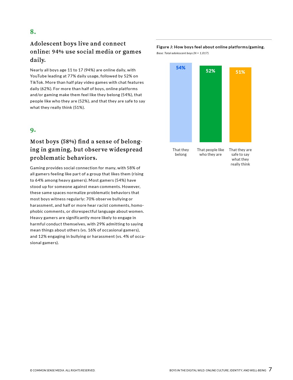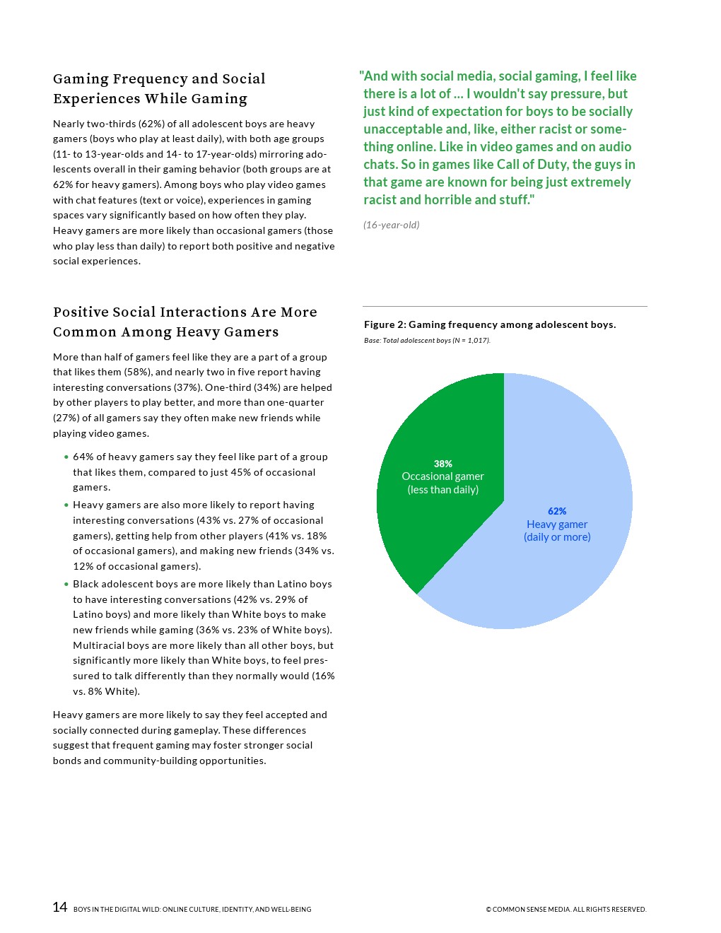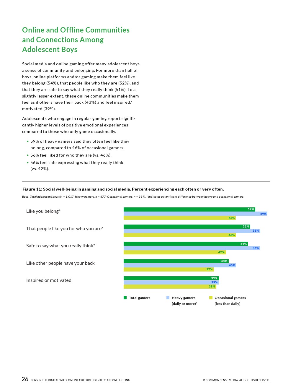 大多数男孩(58%)在游戏中找到归属感,但也观察到普遍存在的问题行为