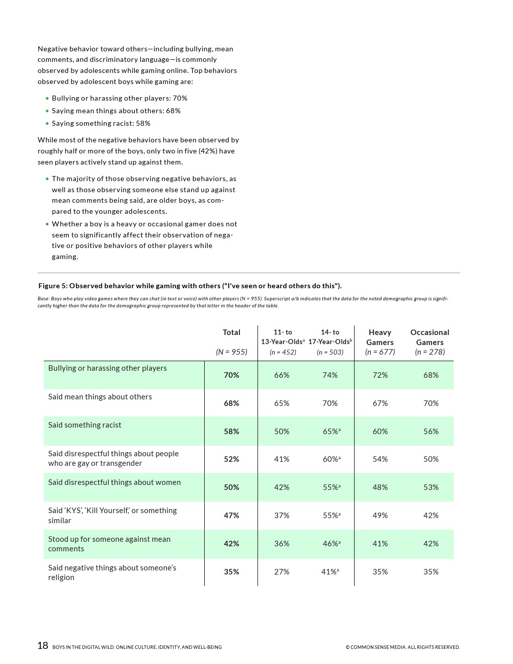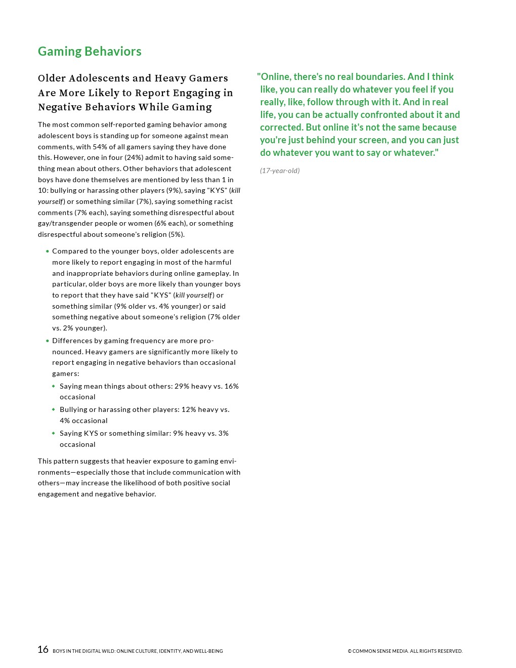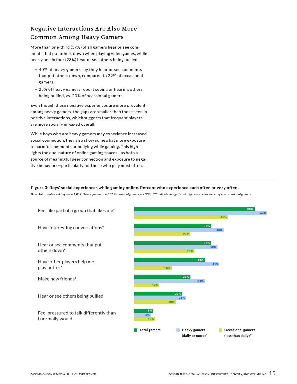 大多数男孩(58%)在游戏中找到归属感,但也观察到普遍存在的问题行为