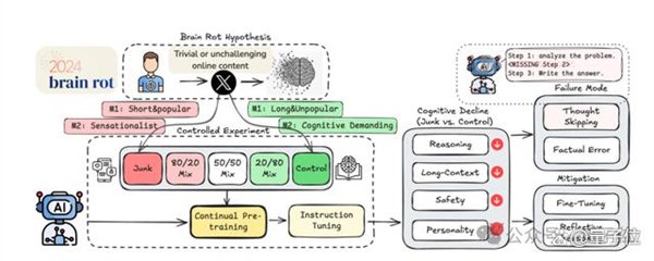 大语言模型(LLM)持续接触垃圾数据后,是否会像人类一样出现认知衰退?(即“LLM脑损伤假说”)