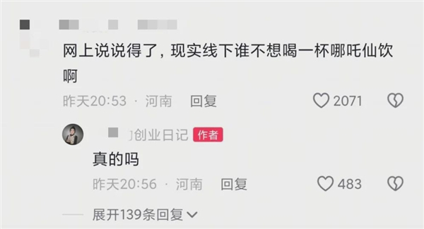 各地留子们也在评论区玩梗:等我回国一下飞机,就去喝一杯哪吒x饮。